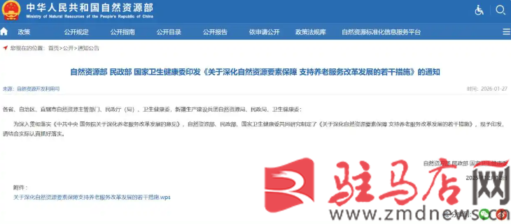 驻马店网讯(记者 张乾阳)近日,自然资源部联合相关部门近日印发《关于深化自然资源要素保障 支持养老服务改革发展的若干措施》,围绕“降低用地成本、盘活存量资源”推出系列举措,推动养老服务向“提质增效、降负纾困”全面升级。