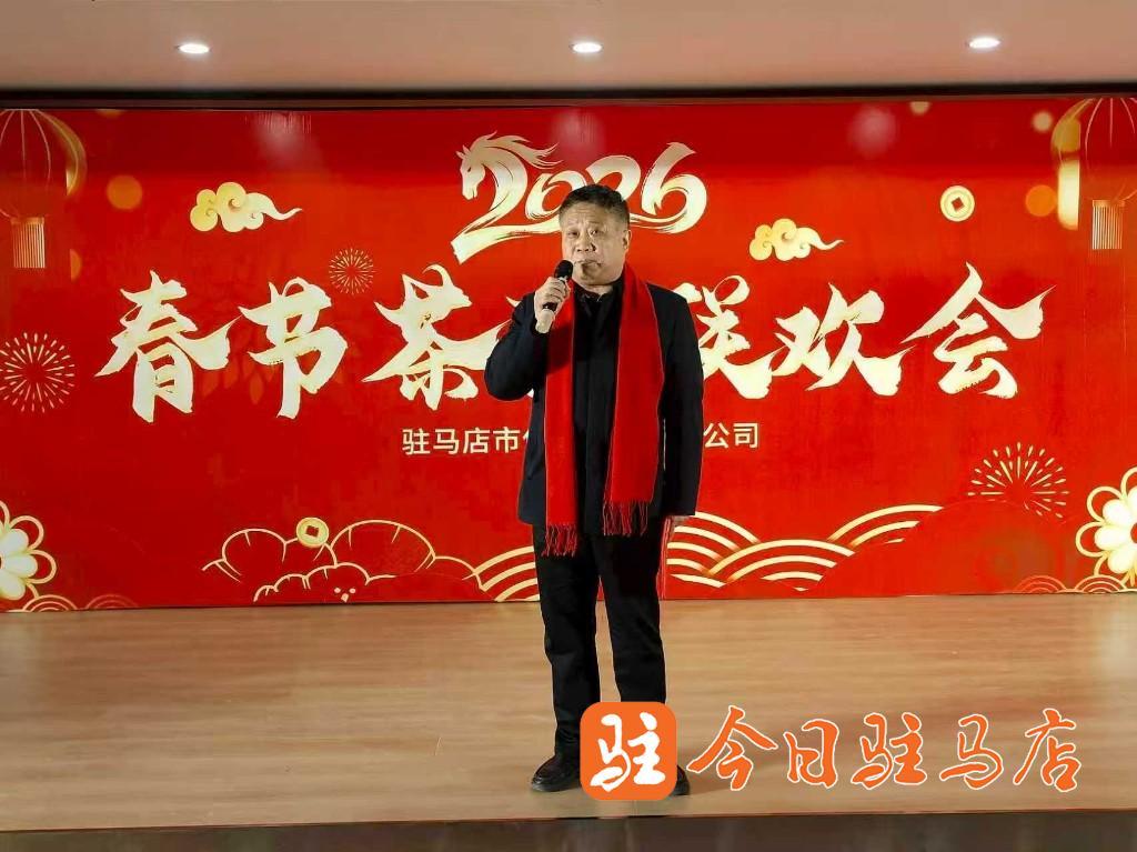 驻马店网讯(记者 高琳琳)骏马迎春至,欢歌贺岁来。2月11日下午,驻马店市保安服务有限公司2026年春节茶话会隆重召开。公司领导班子、各分公司及部门负责人与基层员工代表齐聚一堂,共忆往昔峥嵘,共话未来蓝图,用昂扬的歌声、欢快的舞姿,奏响了国有安保企业凝心聚力、逐梦前行的新春乐章。