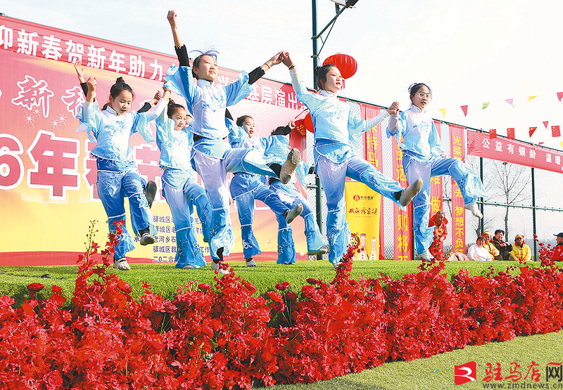 驻马店网讯(记者 王永良 张朝 王永良 高琳琳)2月13日上午,驿城区老河乡石古庄村文化广场锣鼓喧天、喜气洋洋,处处洋溢着浓浓的年味儿。以“跃马新程 同心致远”为主题的2026年春节团拜会暨迎新春贺新年助力乡村振兴走基层演出活动在这里热闹上演。