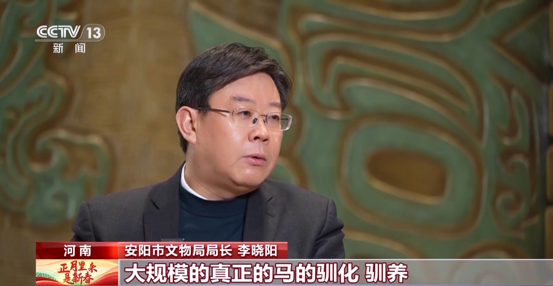 安阳市文物局局长 李晓阳:大规模的真正的马的驯化、驯养,是从商晚期殷墟开始的,不仅是从考古发现,从甲骨文里边我们能知道,贵族的出行、祭祀、战争,马都是不可或缺的珍贵资源。