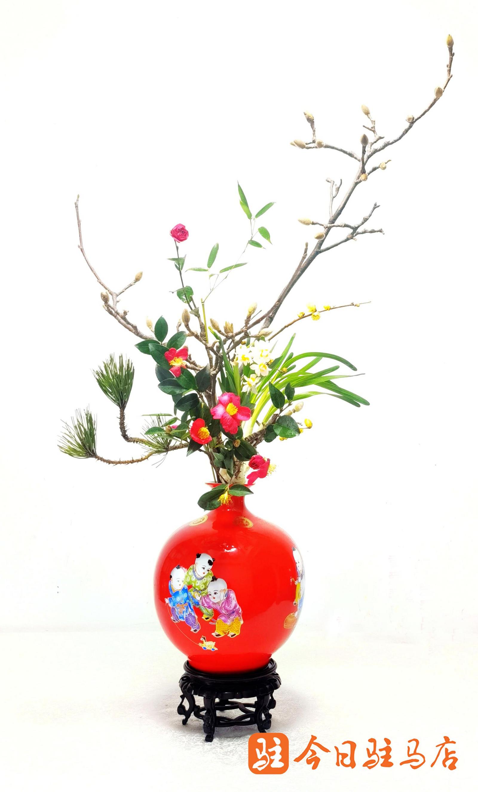 近日,在一次非遗迎春展上,中国传统插花一级花艺师、中国插花花艺高级讲师袁爱琴,用自己培育的梅花,搭配数枝绿枝、几朵小花,经精心剪裁、巧妙布局,一枝枝暗香浮动的梅花挺拔舒展,一盆主题为“梅开早春来”的精致插花作品就此呈现。