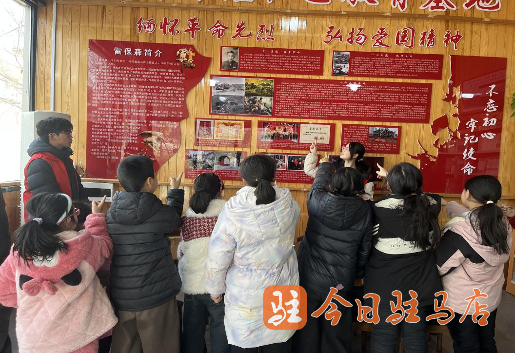 活动现场,志愿者带领孩子们参观书屋红色教育展区,通过“雷保森简介”等图文展板,讲述革命先烈的英勇事迹,引导大家在历史回望中感悟初心使命。孩子们认真聆听、踊跃提问,在沉浸式学习中接受精神洗礼,进一步增强了对家国情怀的理解。