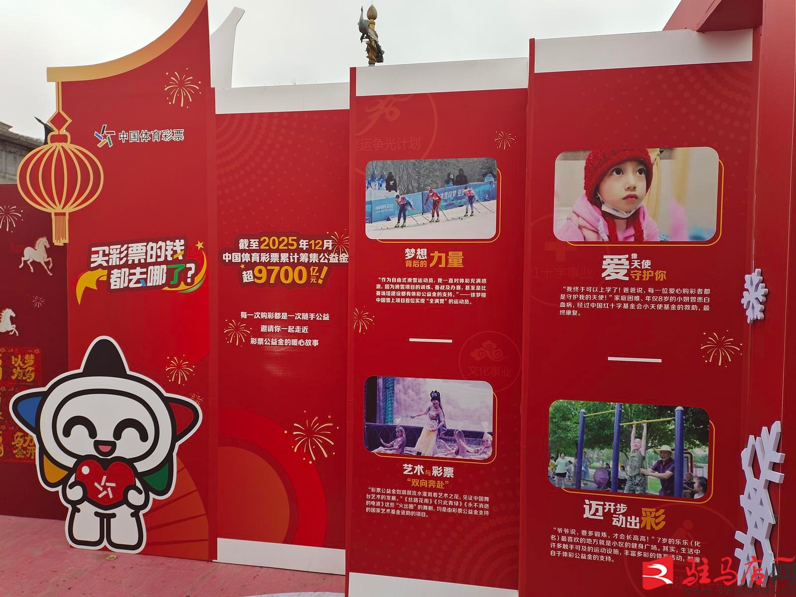 马王阁广场新春贺岁市集以新春红为主基调,以体彩乐小星IP和马为主体,结合新春元素红灯笼、中国结等元素进行场景打造,年味愈发醇厚,成为马王阁广场上一道兼具公益气息与节日氛围的亮眼风景线。活动现场设置品牌展示区、公益科普区、互动游戏区、幸运体验区等多个主题区域,吸引众多市民驻足参与。现场通过图文展板、公益视频等形式,向群众普及体育彩票公益金使用方向、责任购彩理念,展现体彩助力全民健身、体育事业与社会公益的积极成果。