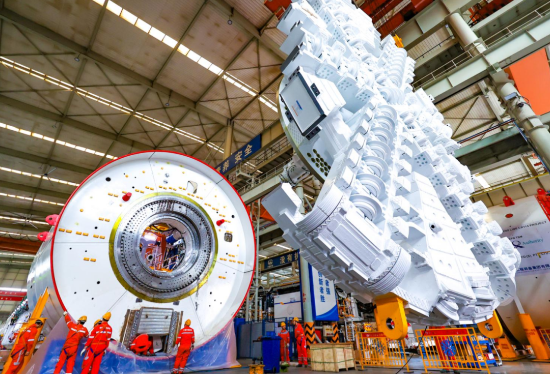 河南积极实施产业创新工程,聚焦现代装备制造、新能源与智能网联汽车等基础较好、关联度高的新兴产业领域,加快推动关键领域技术攻关、集群生态培育构建和规模壮大提升。图为位于郑州经开区中铁工程装备集团有限公司盾构总装车间的大型盾构机,正在进行刀盘吊装作业。聂冬晗/摄