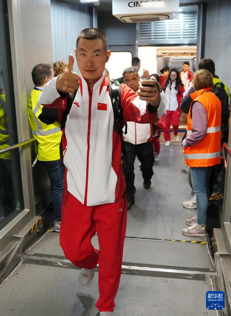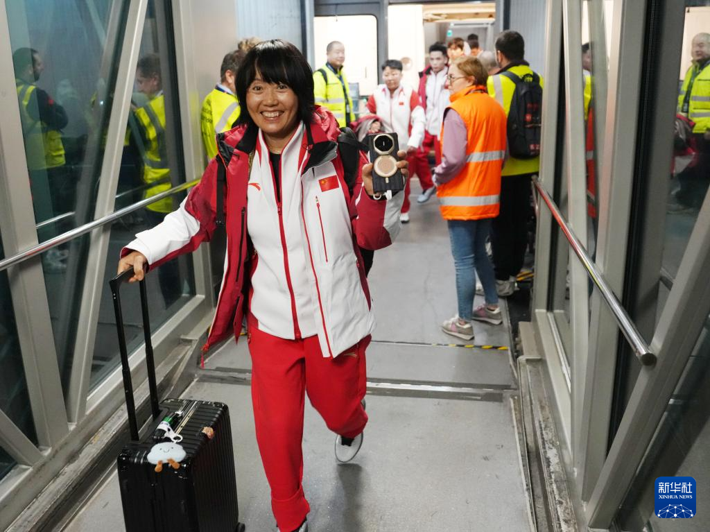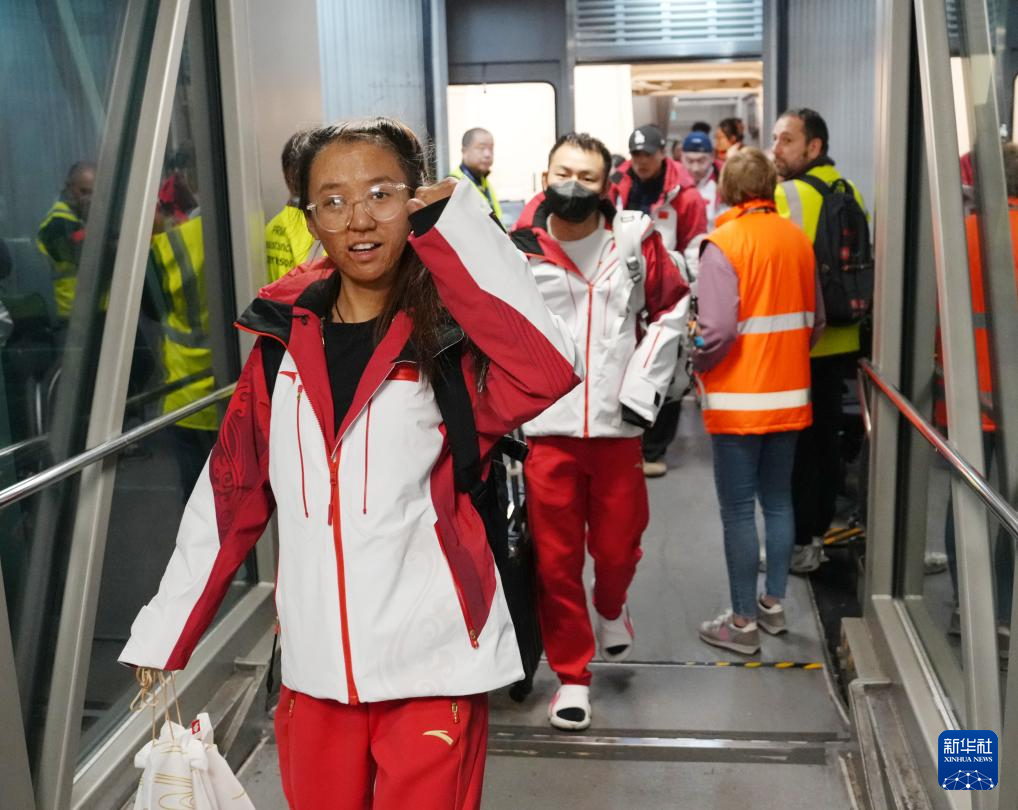 2月28日,中国体育代表团成员抵达意大利米兰马尔彭萨机场。