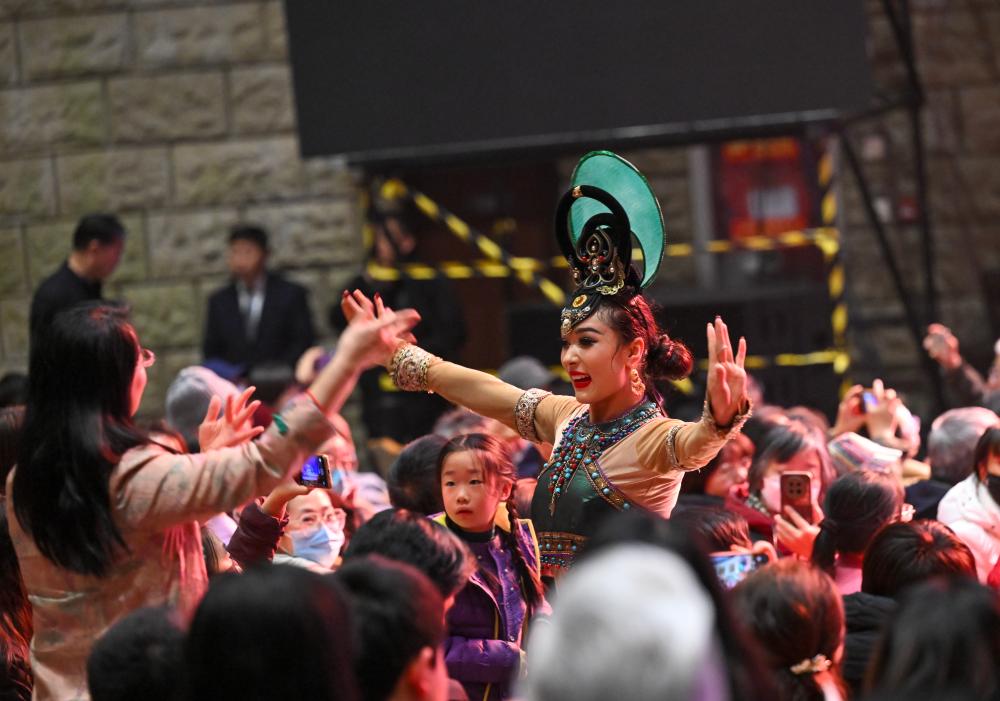 2月28日,演员在大型乐舞诗《杏花之约·丝路龟兹》中表演。新华社记者 金良快 摄