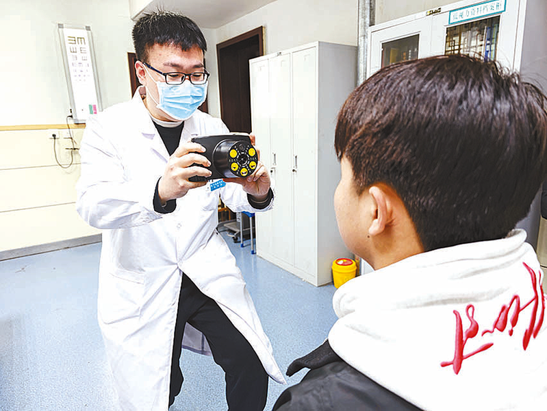 3月2日,在市中医院眼科门诊室里,眼科医生正专注地为孩子检查眼底。市中医院眼科负责人介绍,从2月下旬开始,眼科门诊的就诊儿童数量有上升趋势,开学前,家长纷纷为孩子做全面眼部检查。医生建议,多带孩子进行户外活动,增加体育锻炼和户外活动时间,让孩子拥有一双明亮的眼睛迎接新的学期。