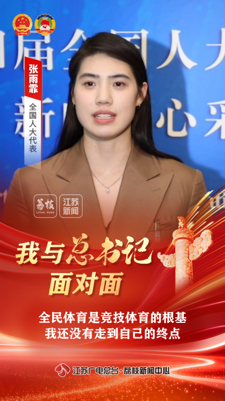 南京体育学院游泳队运动员、游泳学院副院长张雨霏代表,向总书记汇报了“苏超”等大众体育对竞技体育的促进作用,以及她自己参加奥运的“战绩”和对未来征战赛场的目标和规划。