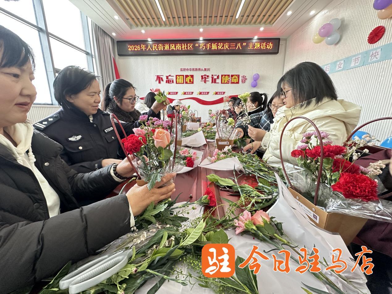 驻马店网讯(记者 高琳琳)为庆祝“三八”国际妇女节,丰富辖区女性居民精神文化生活,营造温馨和谐的社区氛围,3月5日下午,驿城区人民街道风南社区新时代文明实践站联合社区妇联举办“花香沁社区 巾帼绽芳华”庆“三八”插花活动,邀请辖区妇女代表欢聚一堂,以花会友、共叙温情。