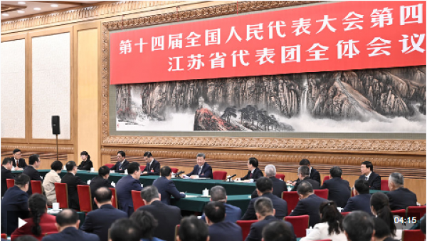 这是总书记2023年初在江苏全票当选十四届全国人大代表后,连续第四年参加本团审议。