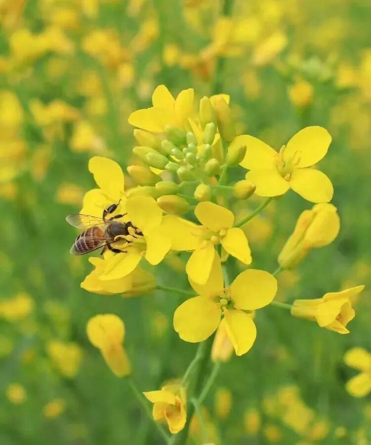 阳春三月,油菜花盛开,一簇簇黄灿灿的小花成片开放,香气馥郁,在春天暖洋洋的太阳光下,清新又治愈。