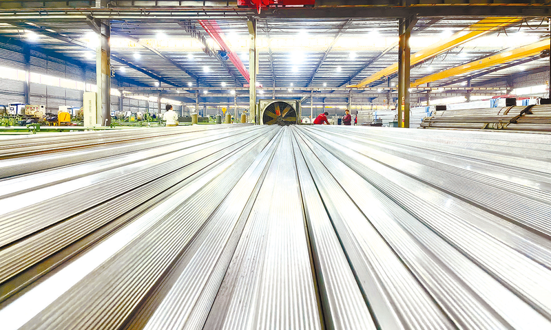 该公司产品覆盖不锈钢卷带、镀锌卷带、门窗、金属结构等品类,从原材料加工到成品包装,全流程生产线带动了周边村民就近就业增收。