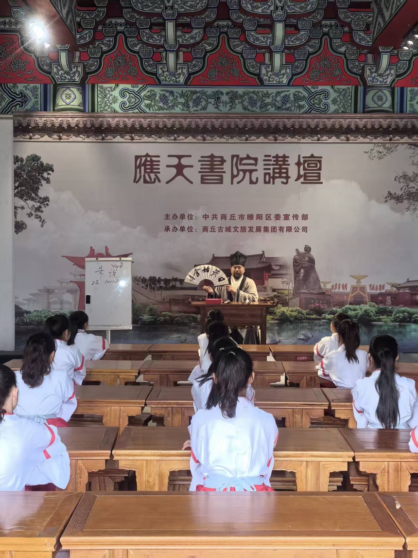 采风团寻访期间,恰逢一批学生在此沉浸式体验国学文化、中原文化。“先天下之忧而忧,后天下之乐而乐!”学生们在导师的指导下,沉浸式学习国学礼仪,诵读经典诗词。应天书院国学礼仪导师王巍告诉记者,如今有许多外地游客愿意来到河南进行“体验式消费”:“我服务过甘肃、沈阳、葫芦岛、海南的游客,他们千里迢迢来到这里,通过沉浸式的体验,更能感受到中原文化的厚重。”