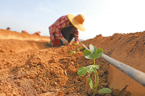 4月5日,河南省焦作市温县招贤乡仓头村村民在种植西瓜。新华社发