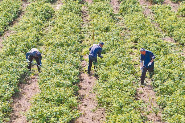 4月12日,走进正阳县清源街道唐段庄社区玫瑰产业园,一株株玫瑰嫩芽初绽、生机盎然。村民三三两两分散在田垄间,弯腰清除杂草、培土管护,一幅“人勤春早”的田间画卷在暖阳下徐徐铺展。