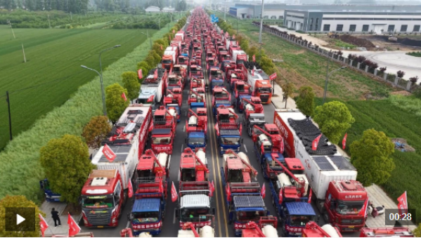 4月16日,河南省驻马店汝南县举行2026年农机跨区作业出征仪式。现场六百余台收割机整齐排列、气势恢宏,1200余名农机手将踏上为期八个多月的跨区作业征程。