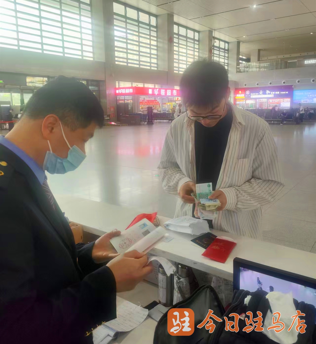 驻马店网讯(记者 张勇 通讯员 冯秋宾)4月17日下午,高铁驻马店西站候车大厅里,旅客刘先生正和“驿路温馨”服务台的工作人员苏峰一起清点失而复得的财物。看着失而复得的背包,6400余元现金、重要证件及首饰完好无损,原本悬着的心终于落了地。