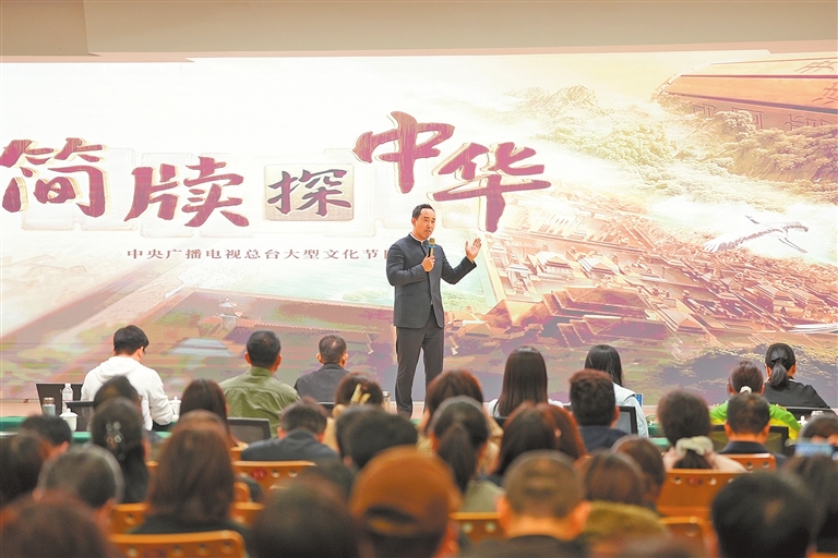“简牍承载文明,记者记录时代,我们都是历史的见证者与传播者。”中央广播电视总台记者马洪涛,从《简牍探中华》节目的创作经过讲起,将记者的使命与古代刀笔吏的职责相连,讲述探秘历史、传承文脉的心路历程。
